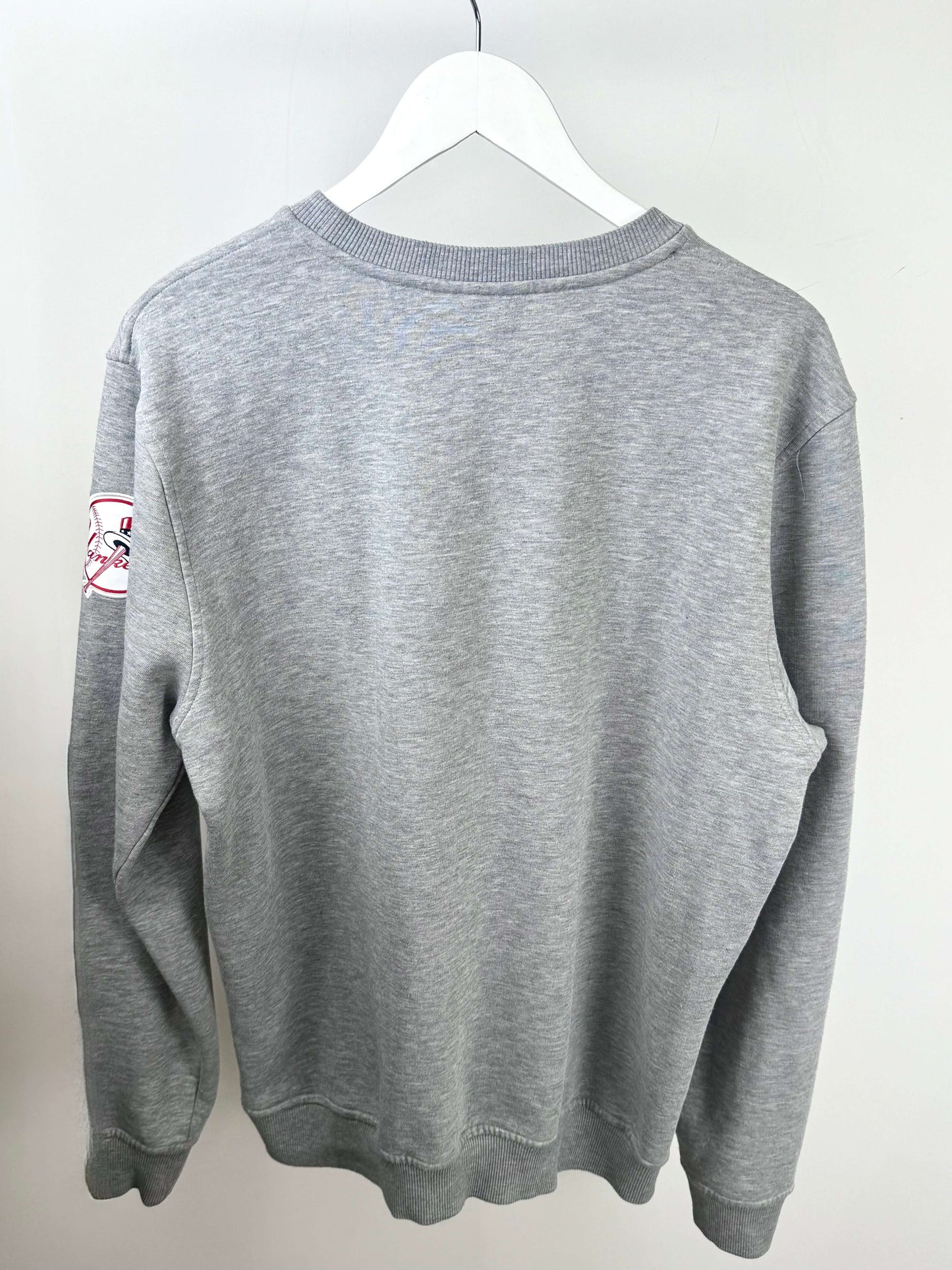 Gagnez un pull des New York Yankees de Genuine Merchandise x New Era ! Gris mélangé avec un patch logo à l'avant et un patch sur la manche. Taille L, taille normale. Le pull est en très bon état.